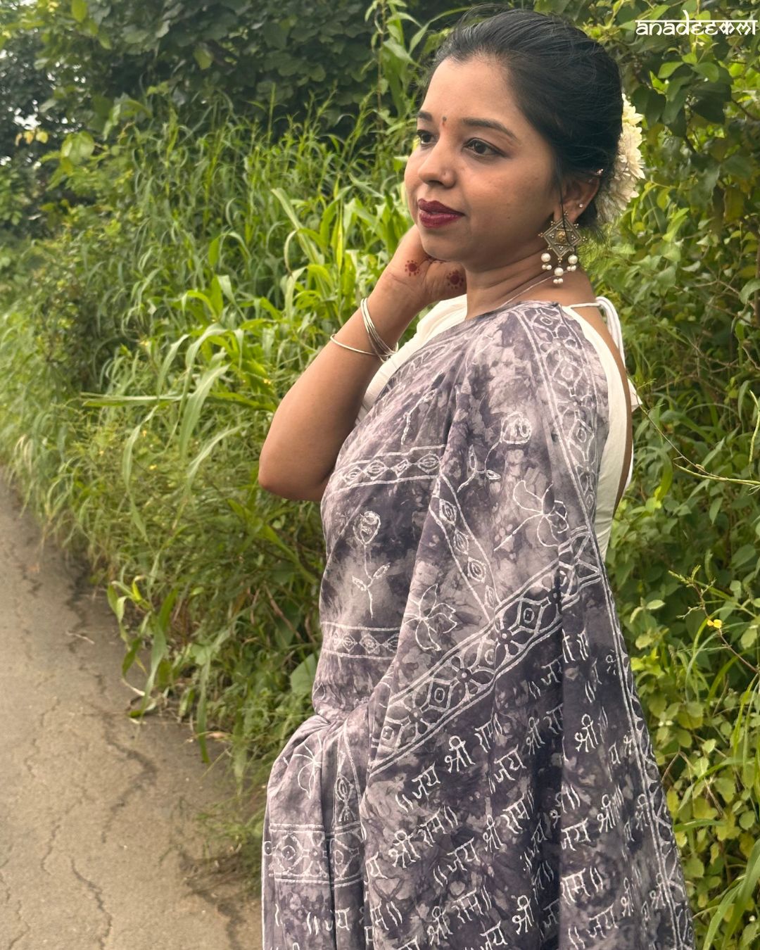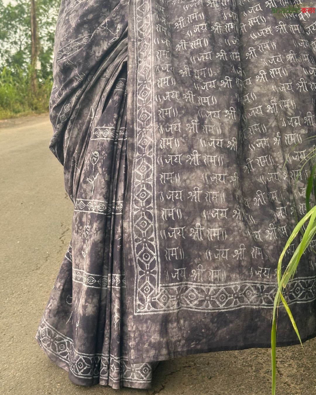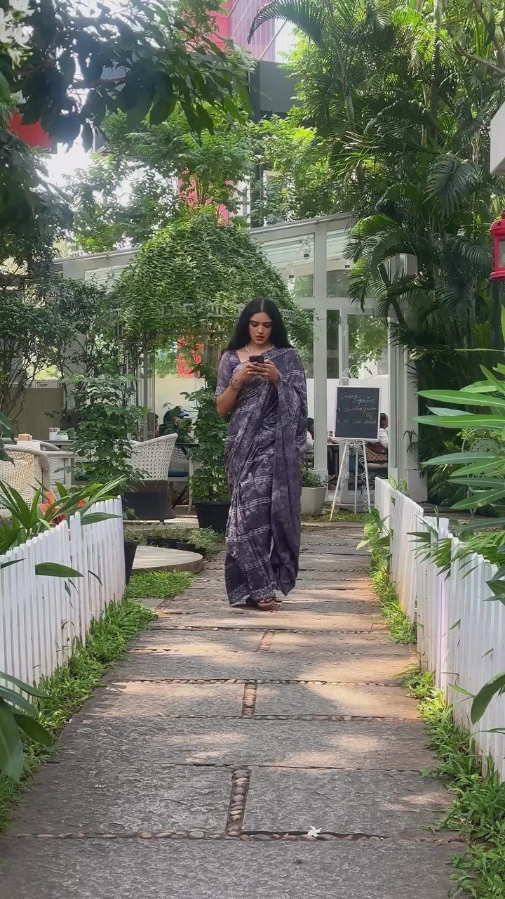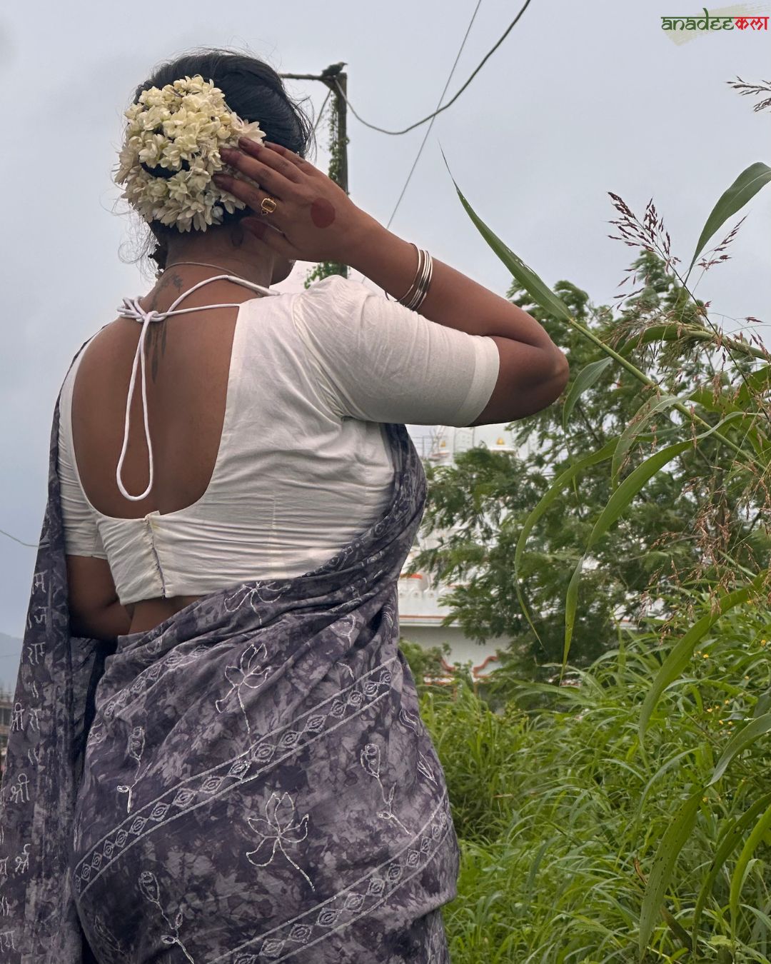 Delicately adorned with hand block printed motifs, the saree carries a quiet elegance that flows with effortless ease. Its lightweight texture makes it a perfect choice for all-day wear—ideal for conscious women who seek style with intention.