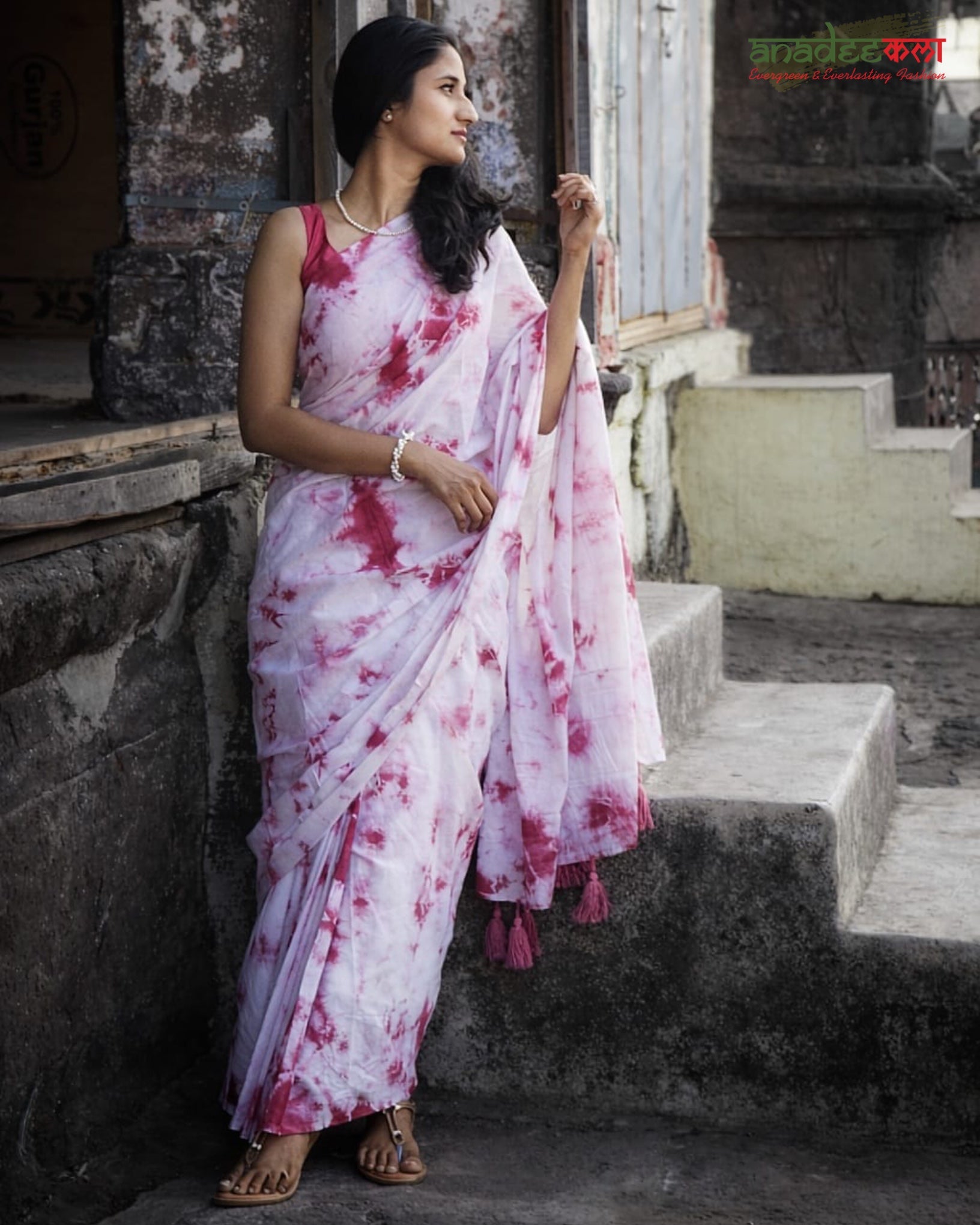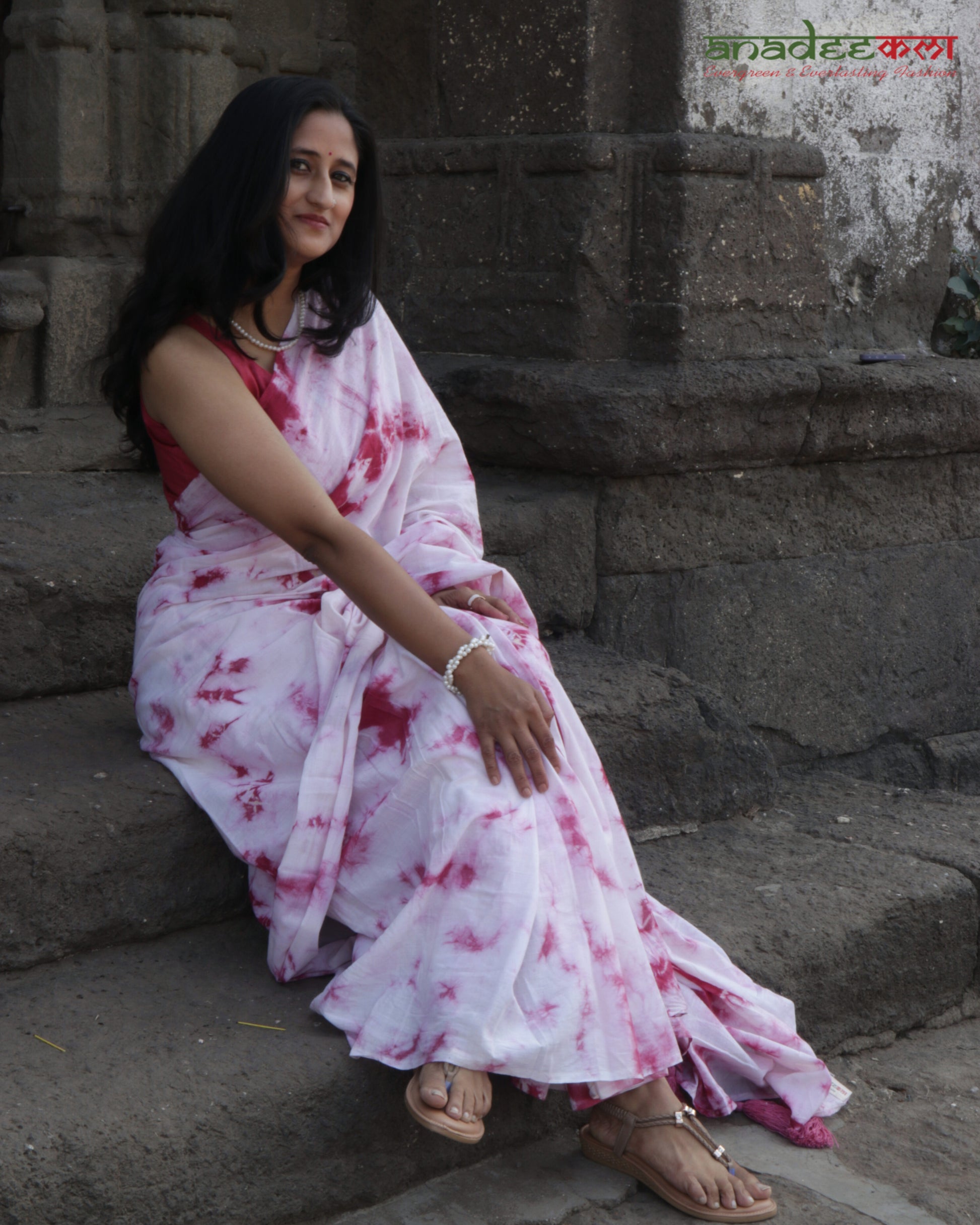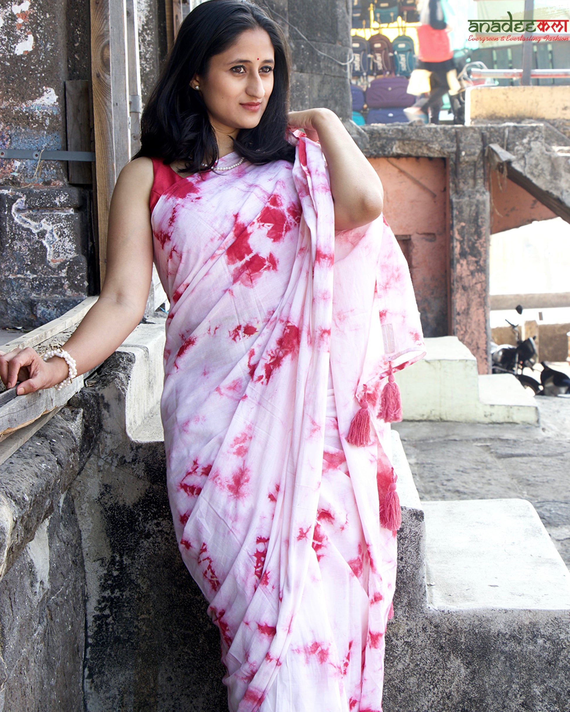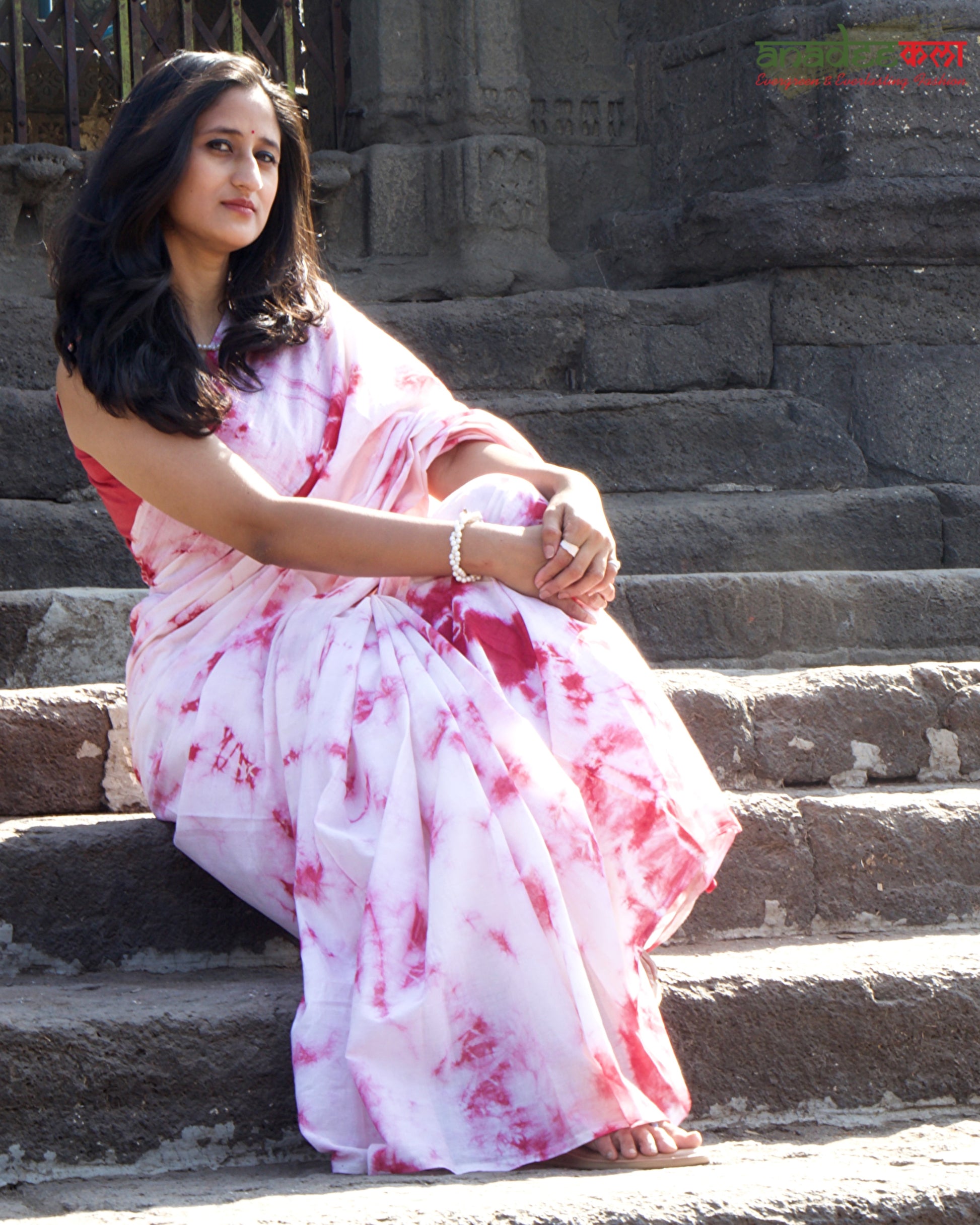 Ivory Blush is designed for effortless elegance. Crafted in ultra-soft mul cotton, this white–pink tie-dye saree feels light on the skin and fluid in movement, making it ideal for everyday wear with a refined sensibility.